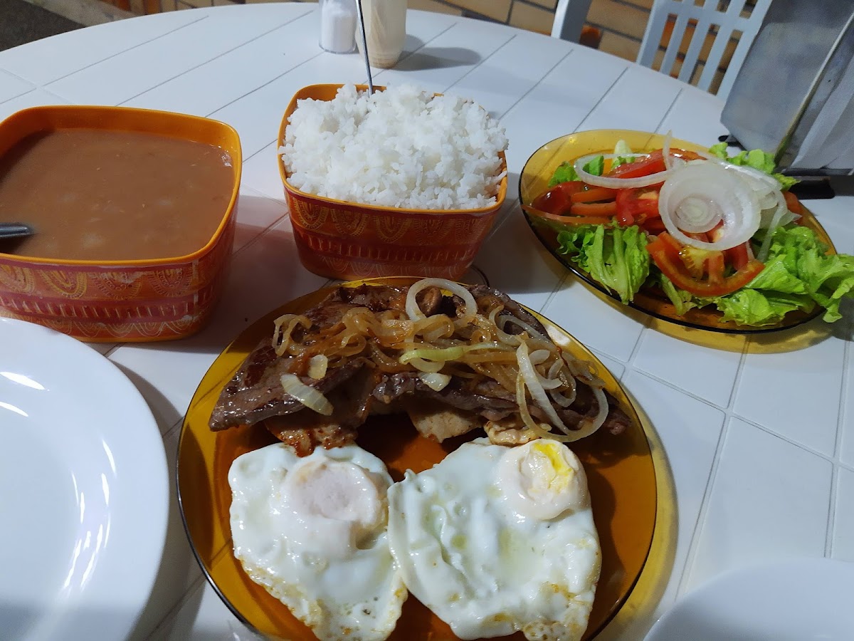 Signature dishes like the Arroz Feijão Alface Tomate Cebola Ovo Frito E Bife Acebolado highlight classic Brazilian flavors cooked in a way that feels genuinely homemade. Portions here are generous, often large enough to share, so it suits anyone hungry for a filling lunch that hits the comfort food mark. Additionally, the Loco Moco indicates a touch of variety within the offering, mixing a bit of influence while staying grounded in simple, satisfying fare.
